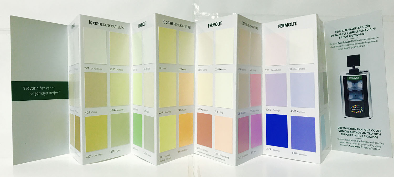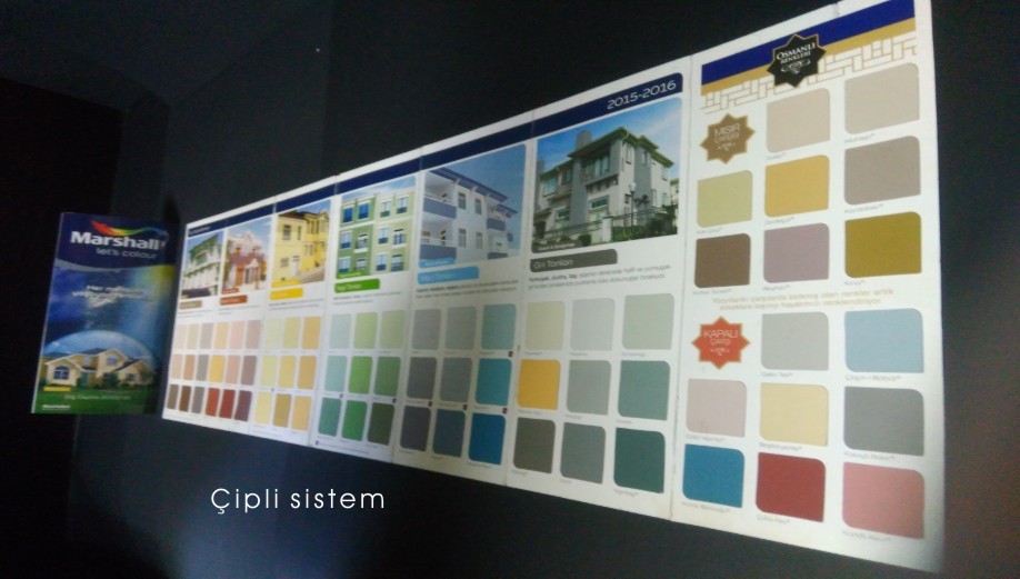 Boyalarınızı bire bir renk sapması olmaksızın özel bir kağıt aracılığı ile dış çephe renk kartelanıza yapıştırarak aktarıyoruz. İmalatı’nı kendimiz yaptığımız bu sisteme matbaa sektöründe “Chipli sistem” kartela üretimi denmektedir. Kullandığımız bu sistem sayesinde boyalarınız gerçekte hangi tonda gözükmesi gerekiyorsa bire bir onu yakalıyoruz. Sektör’de Permolit Boya, Akçalı Boya ve Silkcoat olmak üzere bir çok firmaya hizmet vermenin gururunu yaşıyoruz. Lütfen çalışmalarımızı incelemekten ve bizimle iletişime geçmekten çekinmeyin.